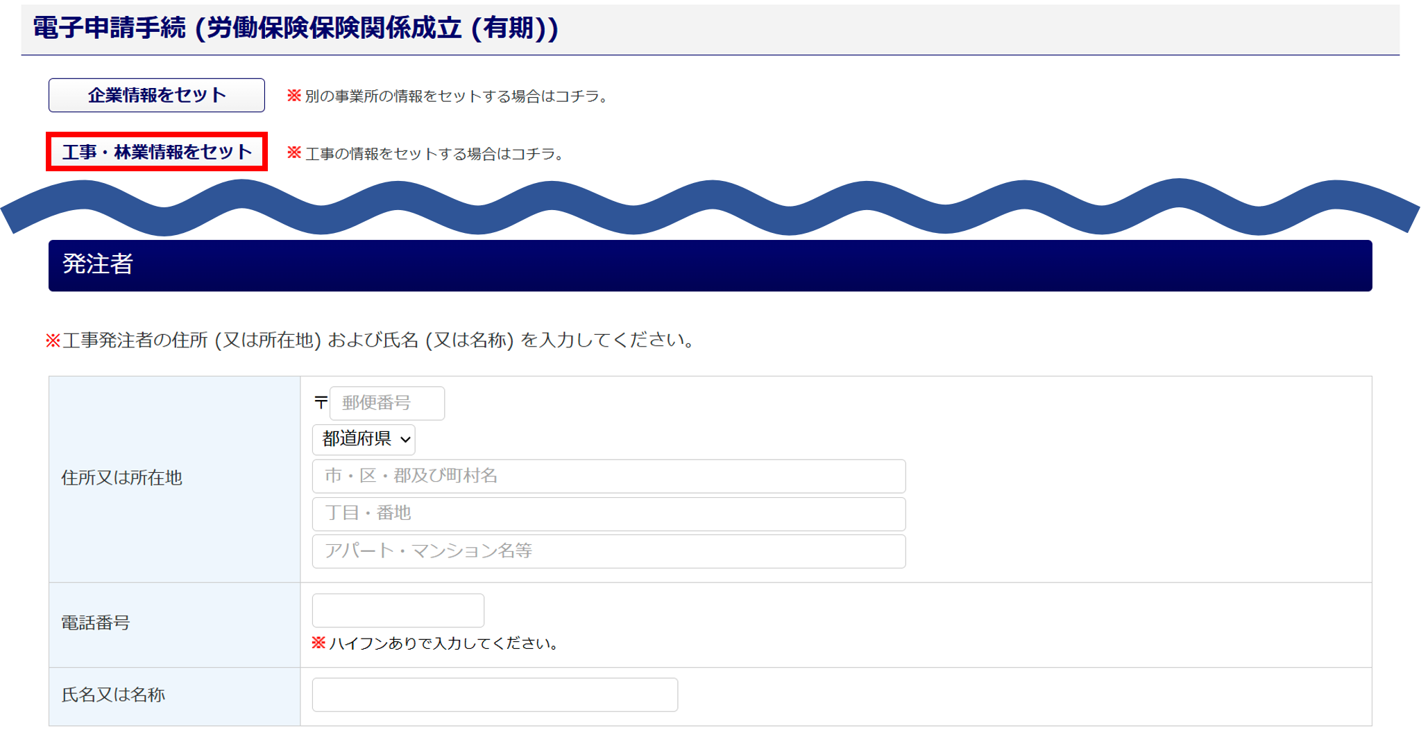 工事発注者の情報を入力します。