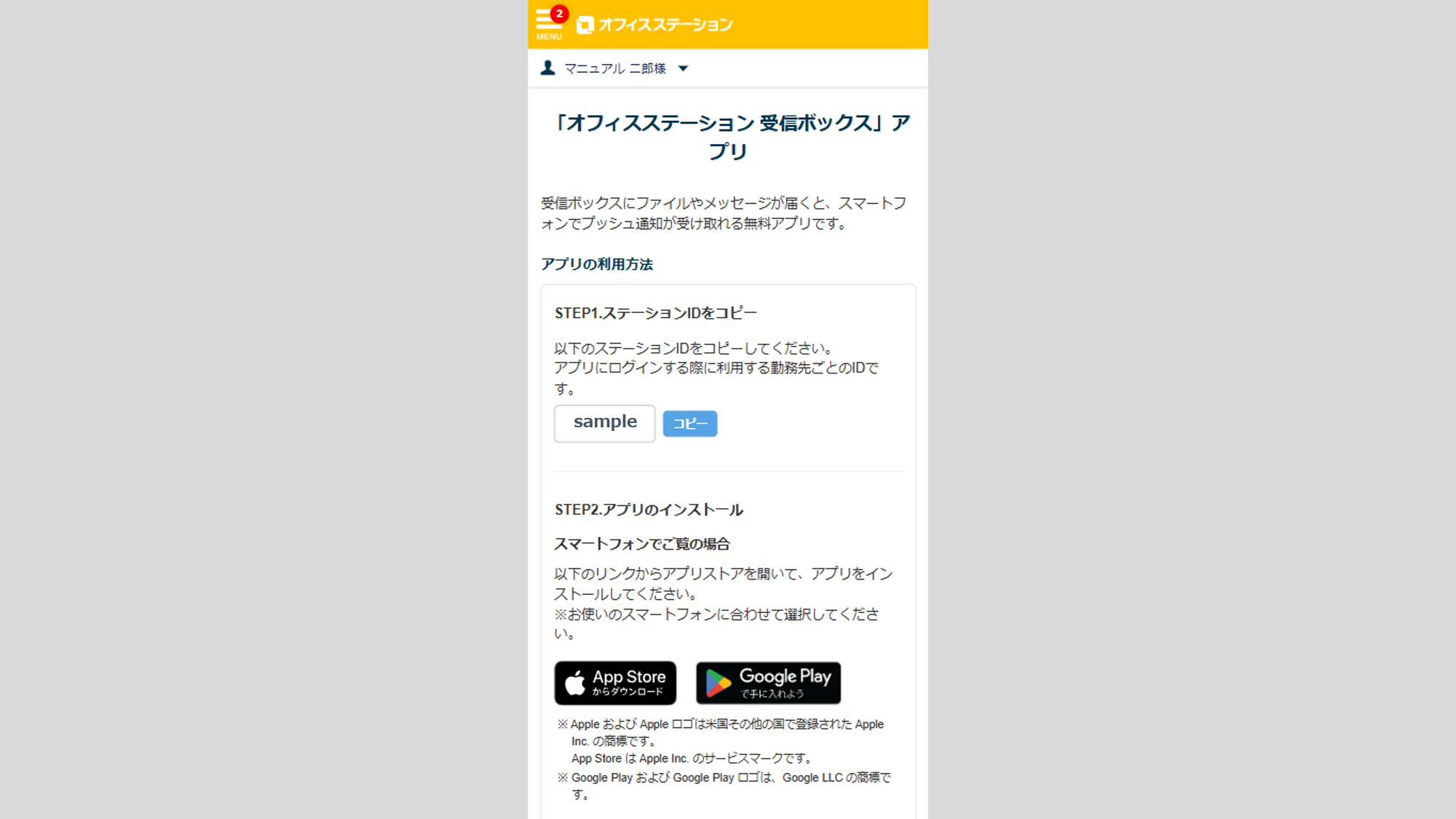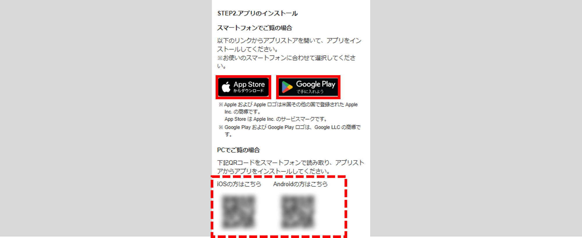 スマートフォンアプリのインストール、および、ログイン方法が表示されます。