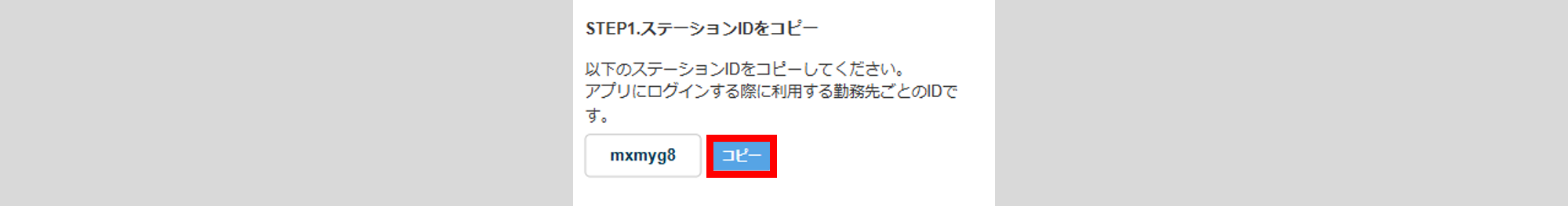 「STEP1.ステーションIDをコピー」欄の[コピー]をクリックします。