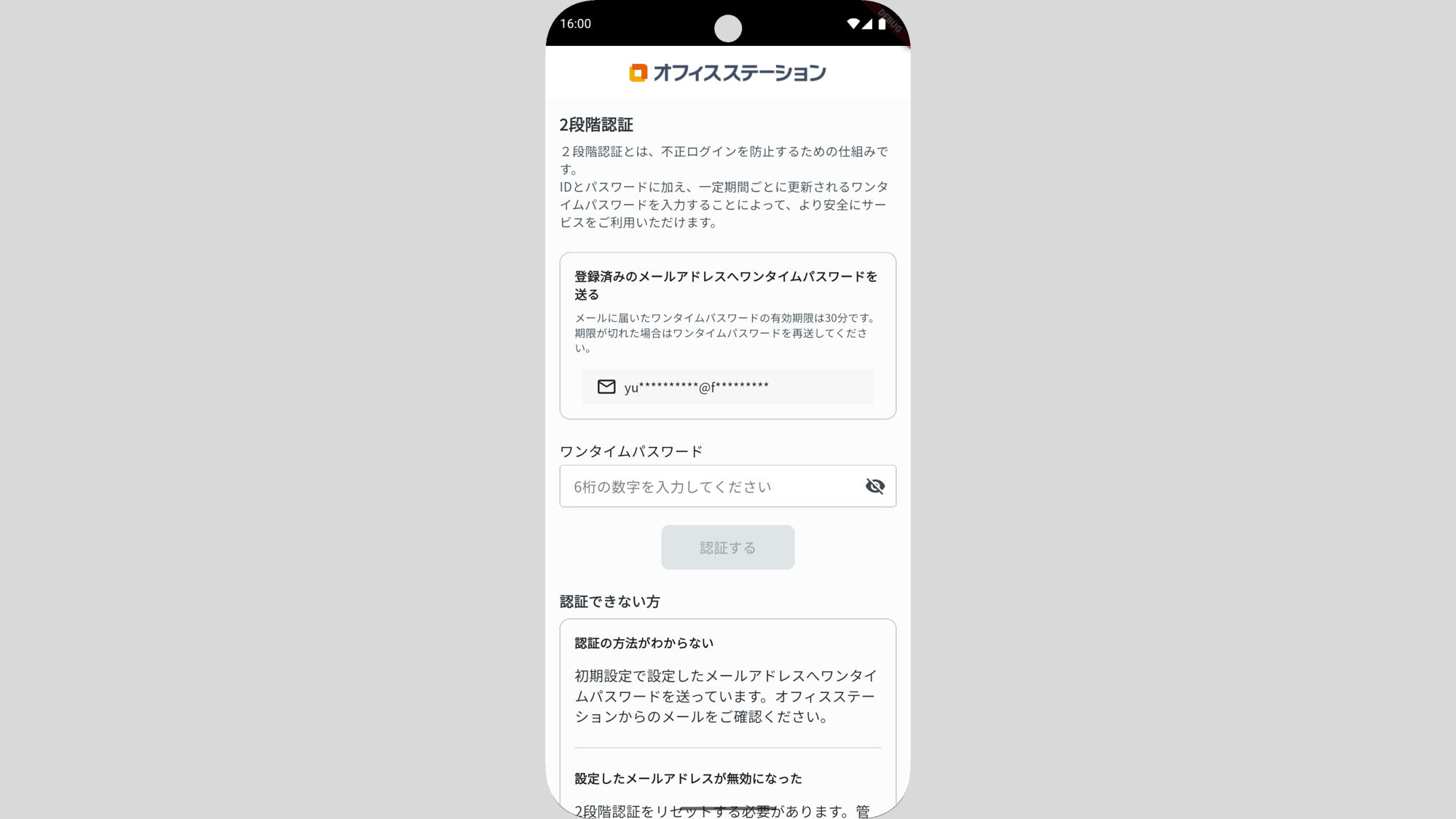 2段階認証画面が表示された場合、ブラウザへのログイン時と同じ方法で2段階認証をおこないます。