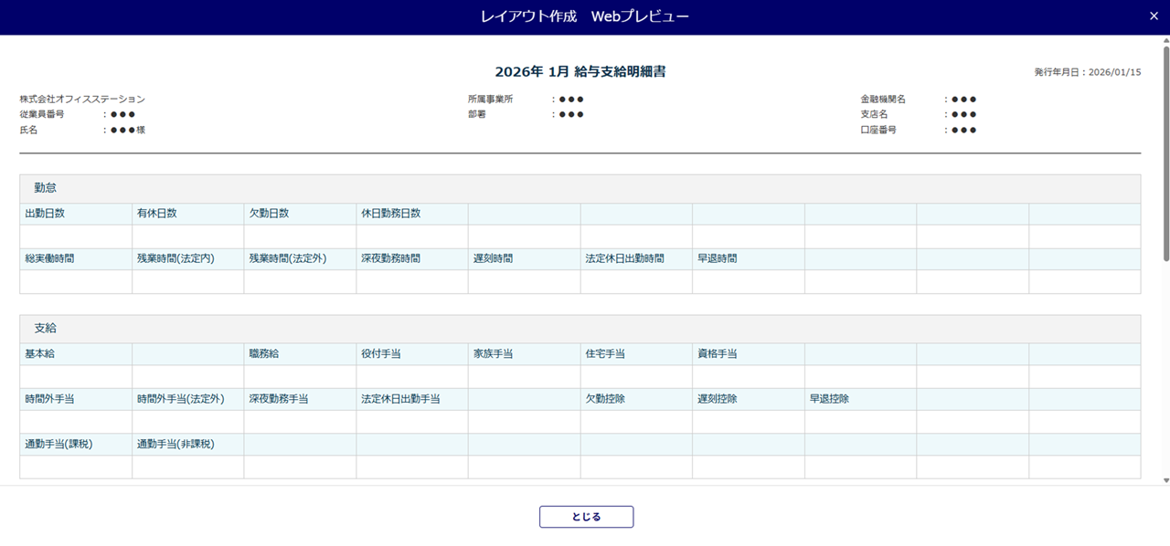 給与明細(カスタマイズ版)の明細レイアウトを作成する方法について、ご説明します。