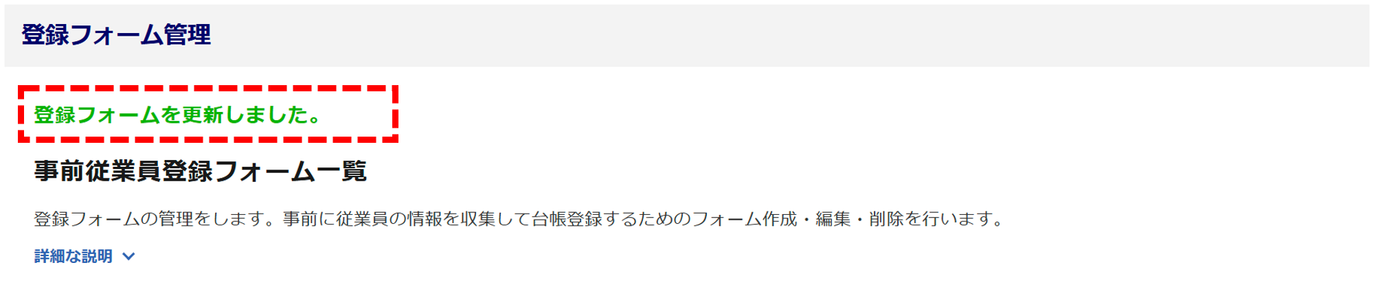 画面左上に「登録フォームを更新しました。」と表示されたら、登録フォームの編集は完了です。