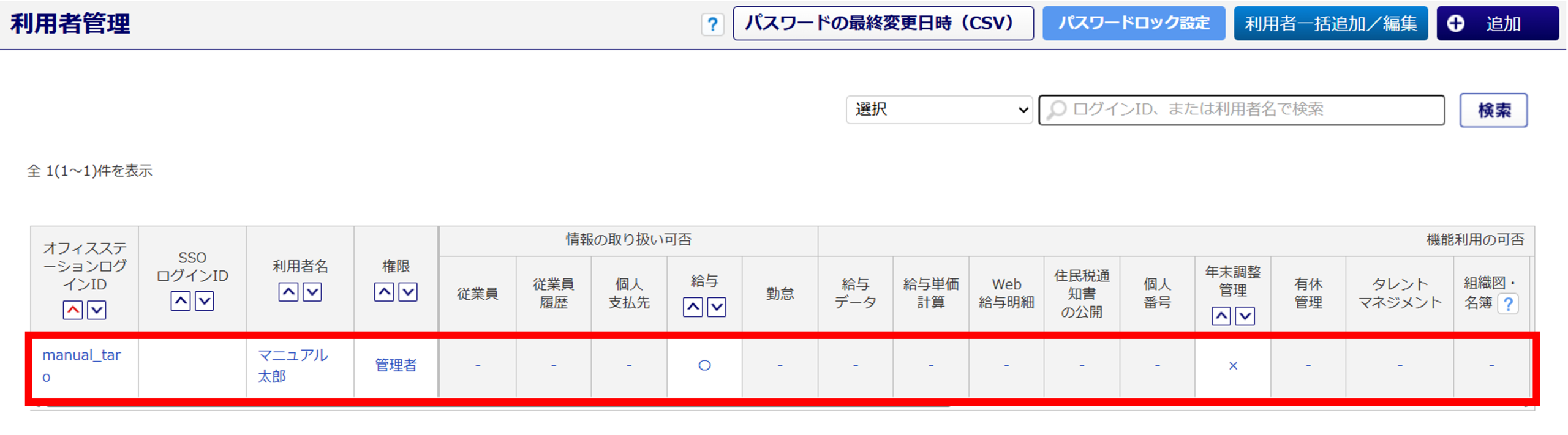 [年末調整]ボタンを表示させる利用者をクリックします。