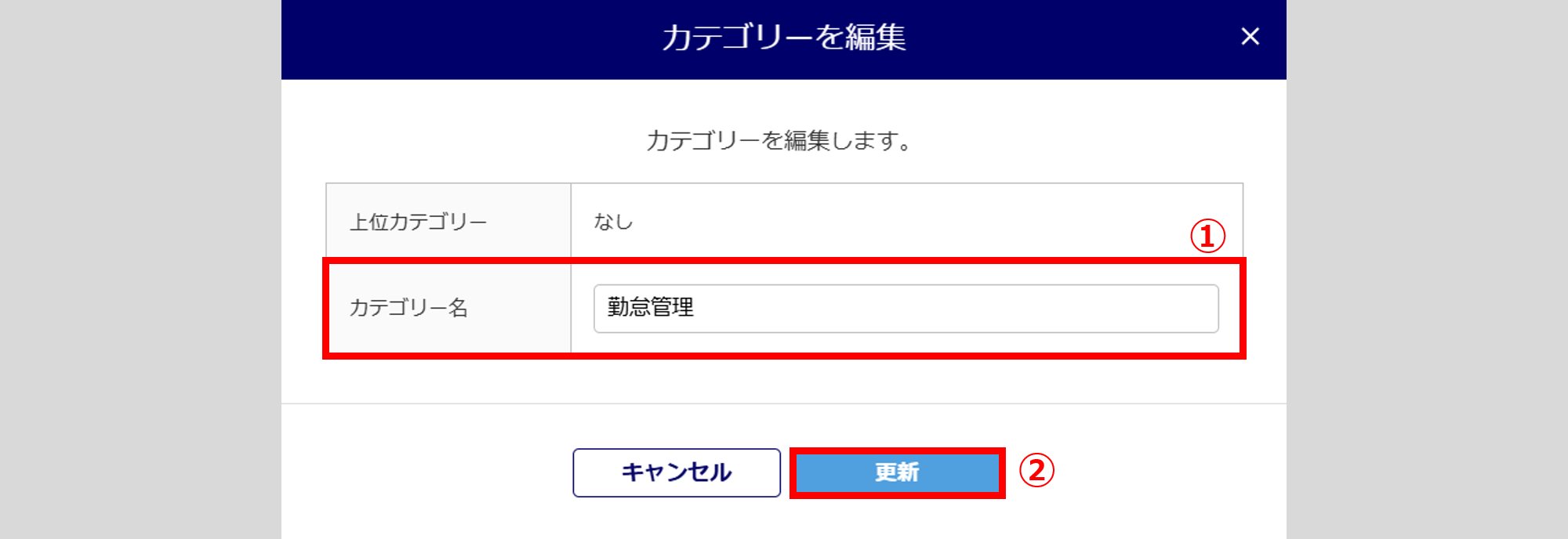 [カテゴリー名]()を編集し、[更新]()をクリックします。
