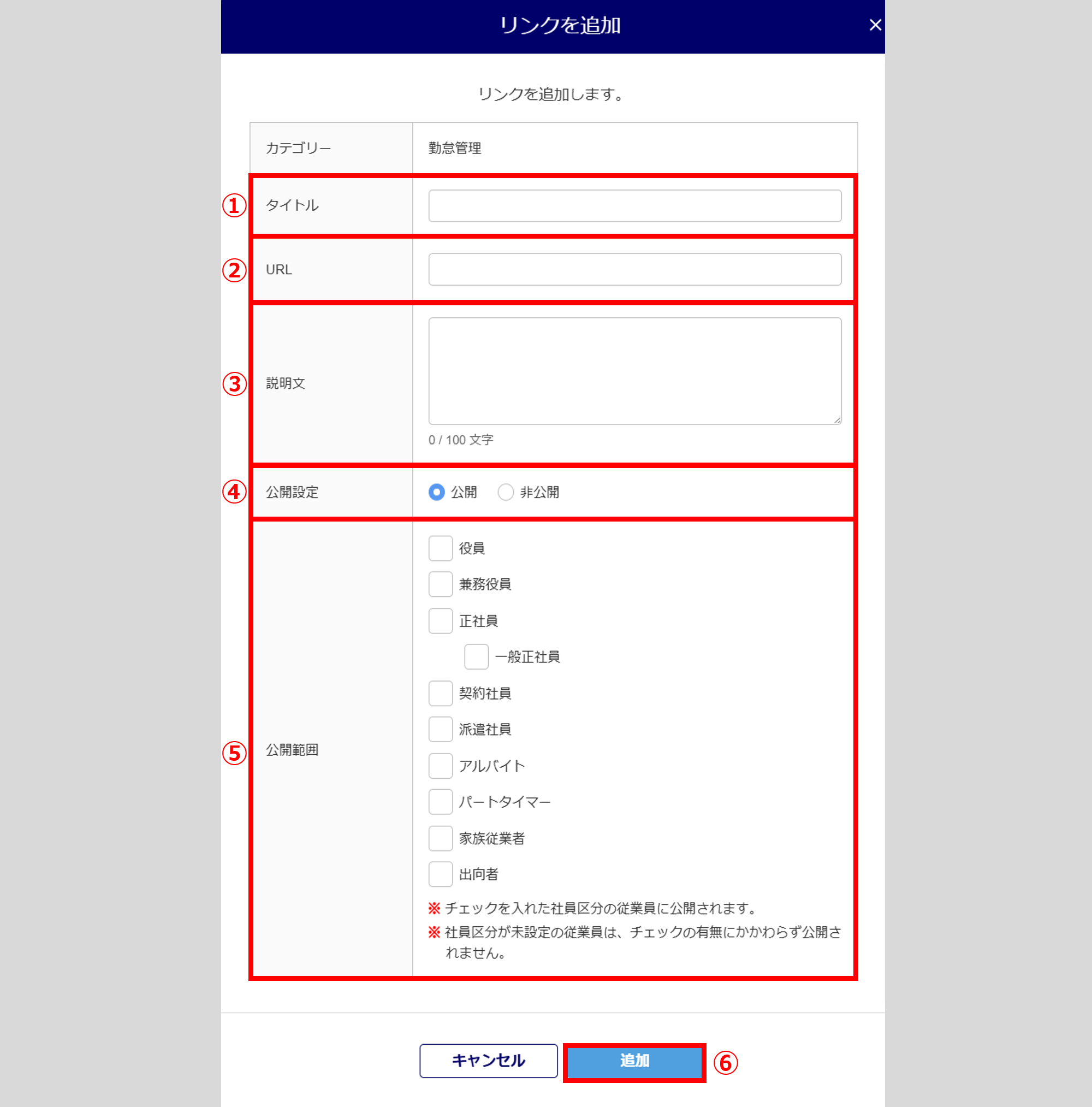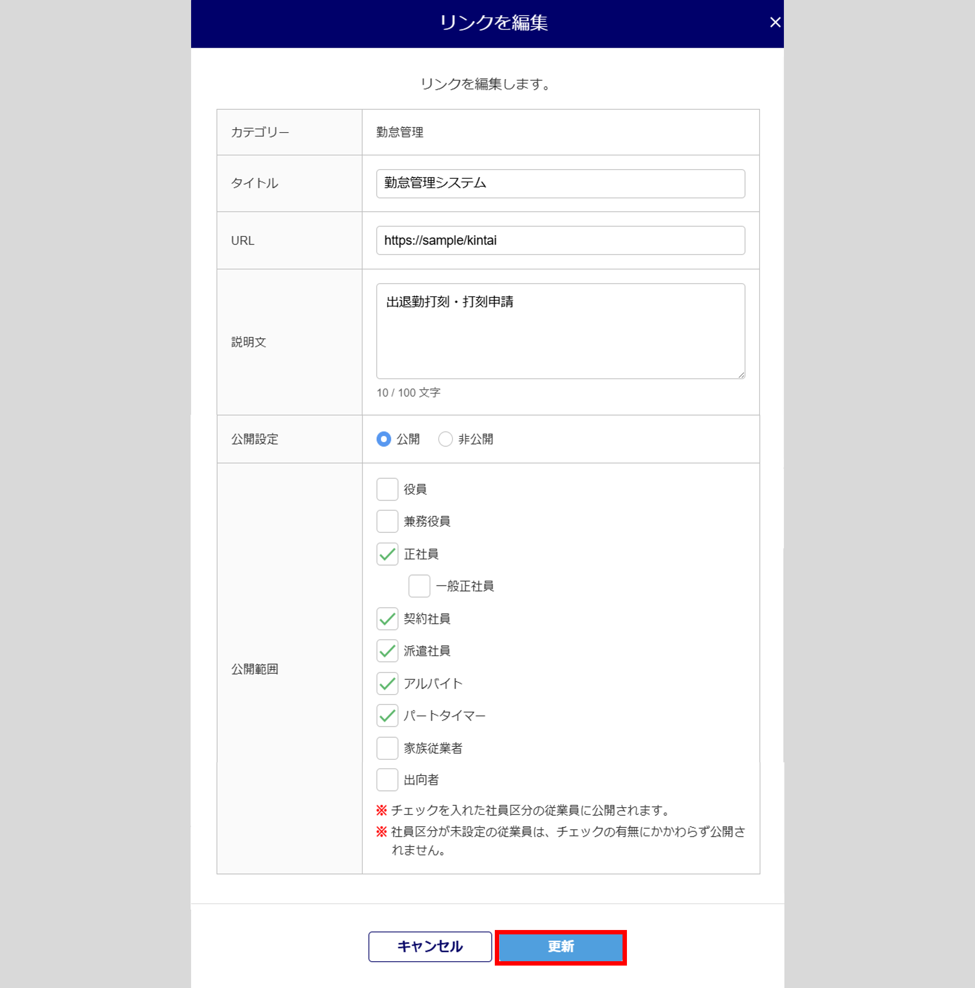 ※チェックを入れた社員区分の従業員に公開されます。