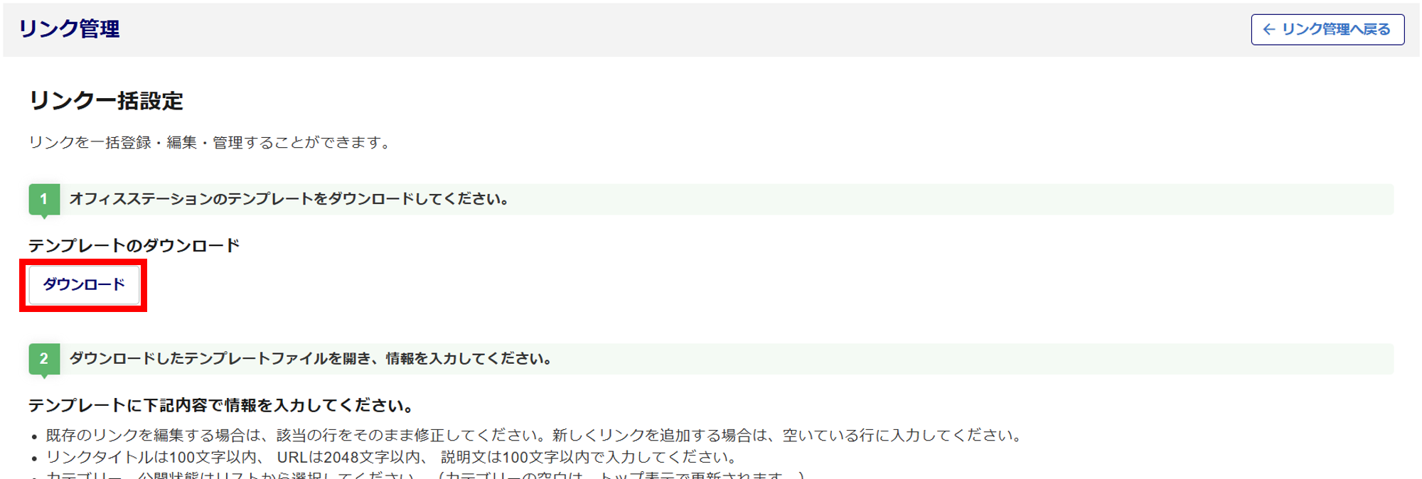 リンクを一括登録・一括編集・一括削除することができます。