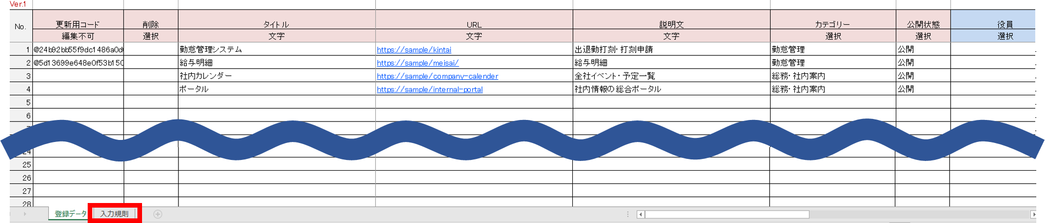 「更新用コード」(B列)は編集しないでください。