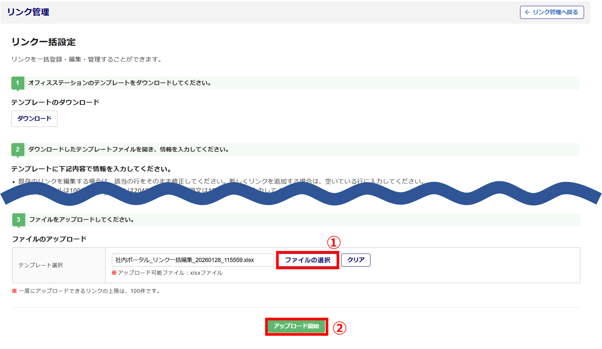 [アップロード開始]()をクリックします。