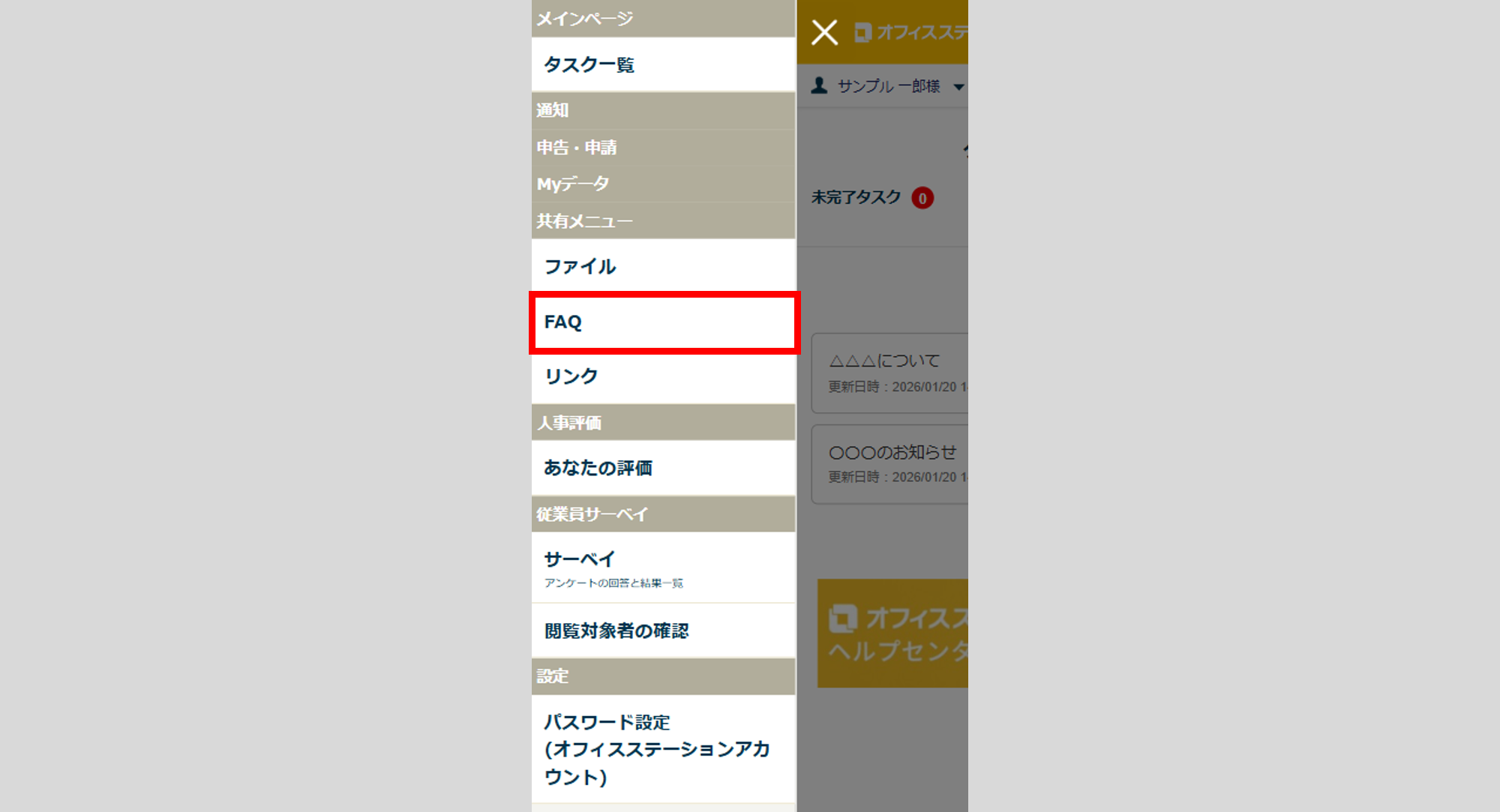 従業員マイページで管理者が設定したFAQを確認する方法について、ご説明いたします。