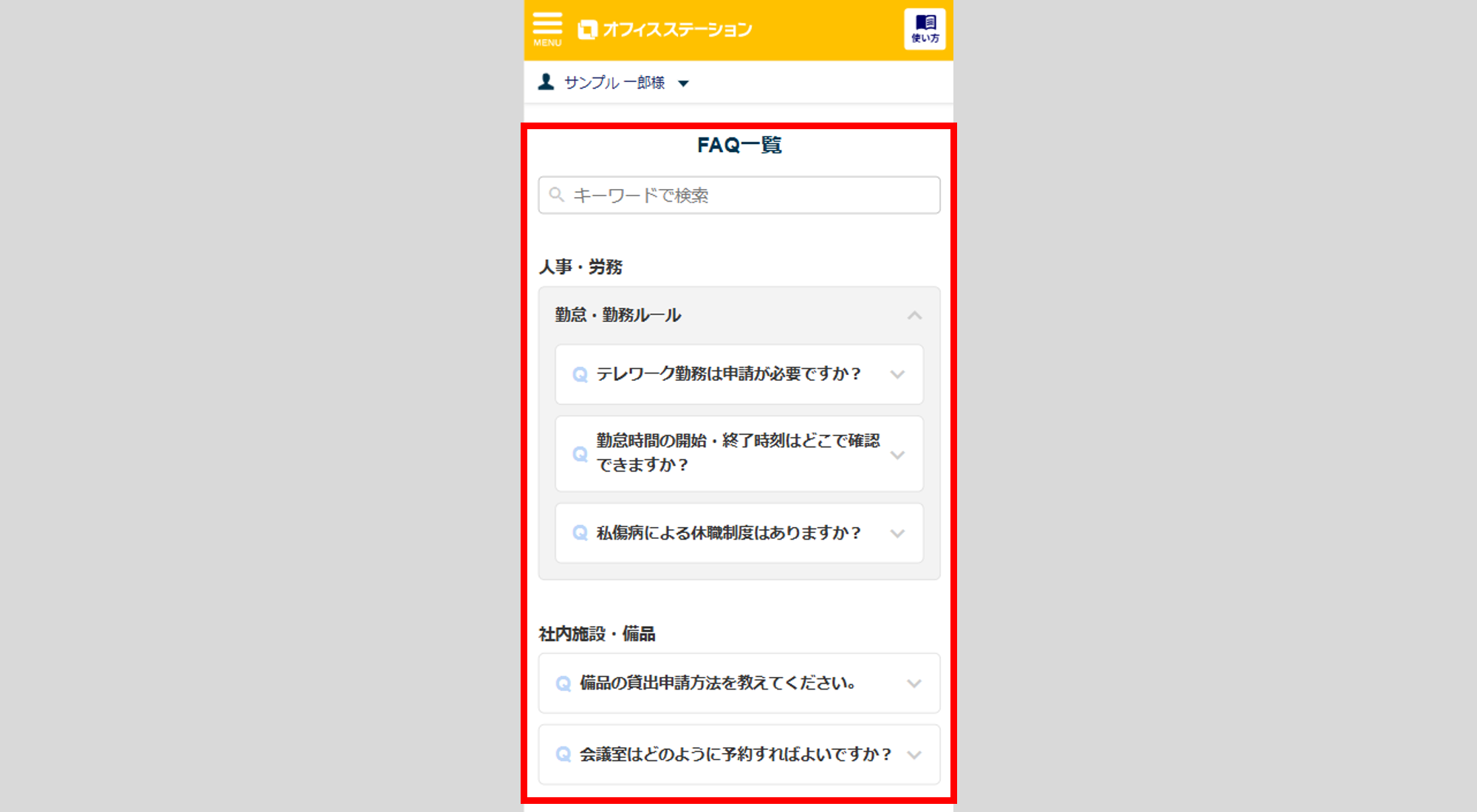 管理者にて設定されたFAQを、従業員マイページで確認できます。