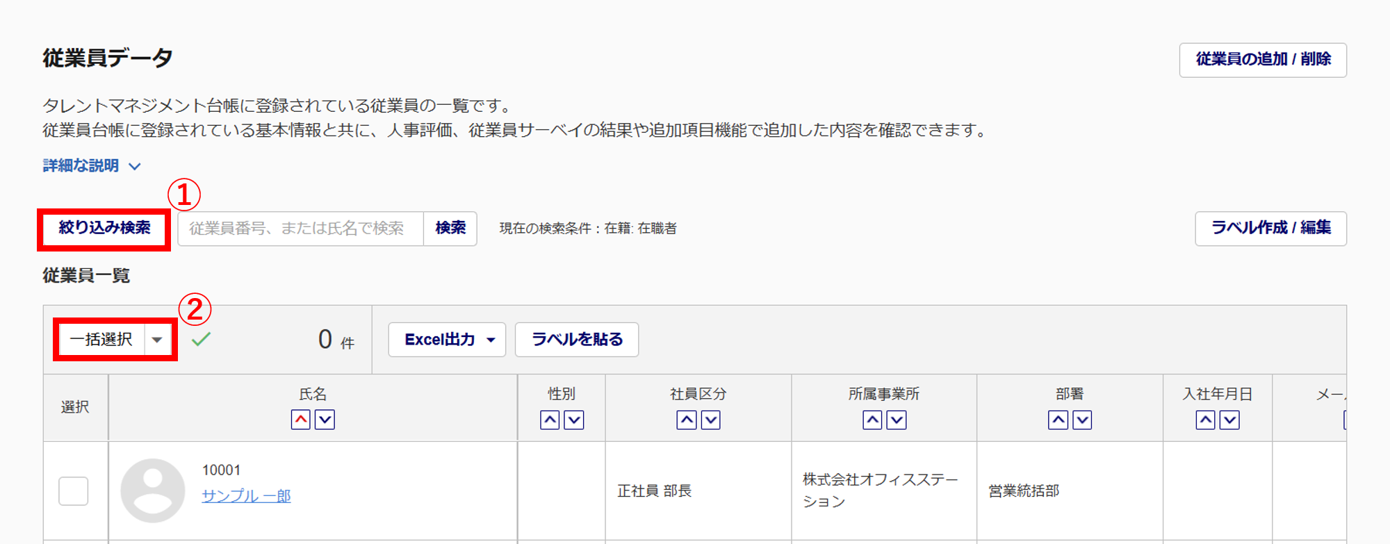 人材データベースの従業員データを確認・操作する方法について、ご説明します。