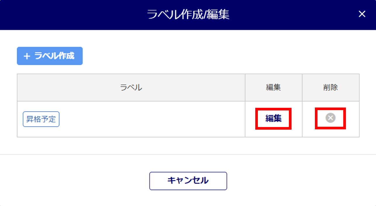 ラベルを編集する場合は、[編集]>内容を変更し[保存]をクリックします。