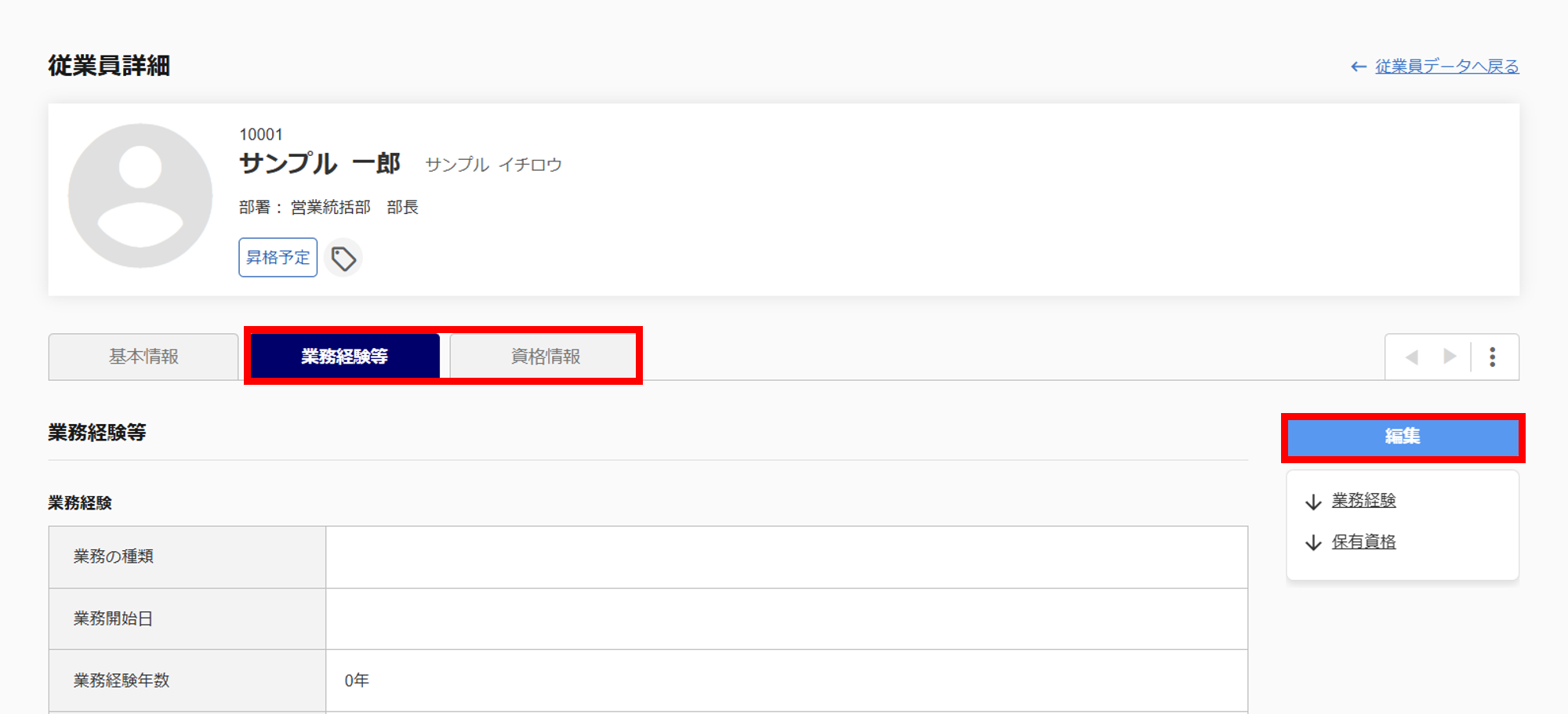 従業員一覧画面の従業員氏名をクリックすると、従業員詳細画面が表示されます。
