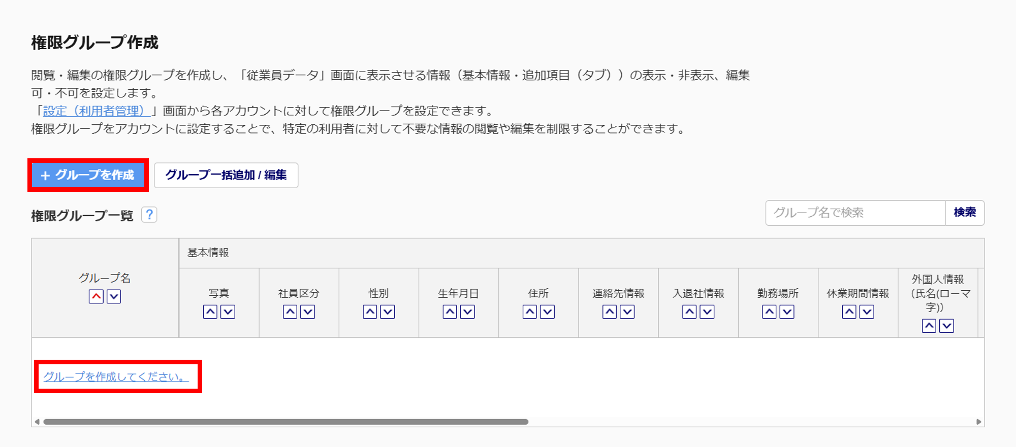 権限グループ作成