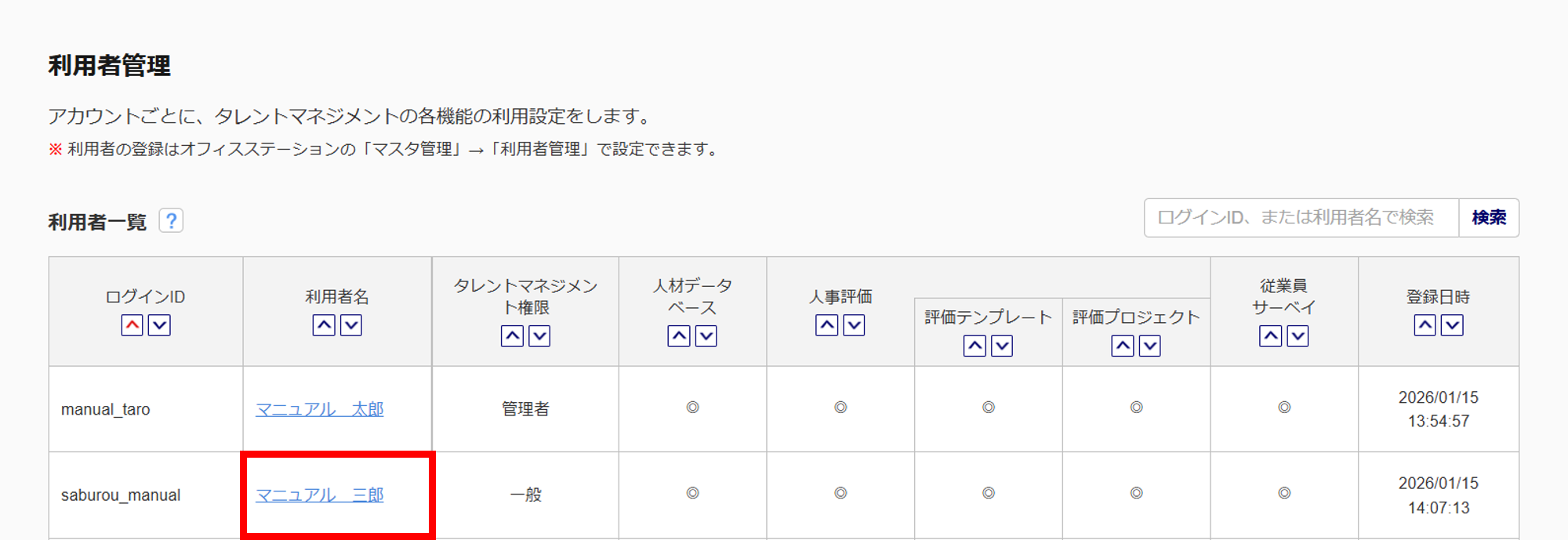 「設定(利用者管理)」の操作には、タレントマネジメントの管理者権限が必要です。