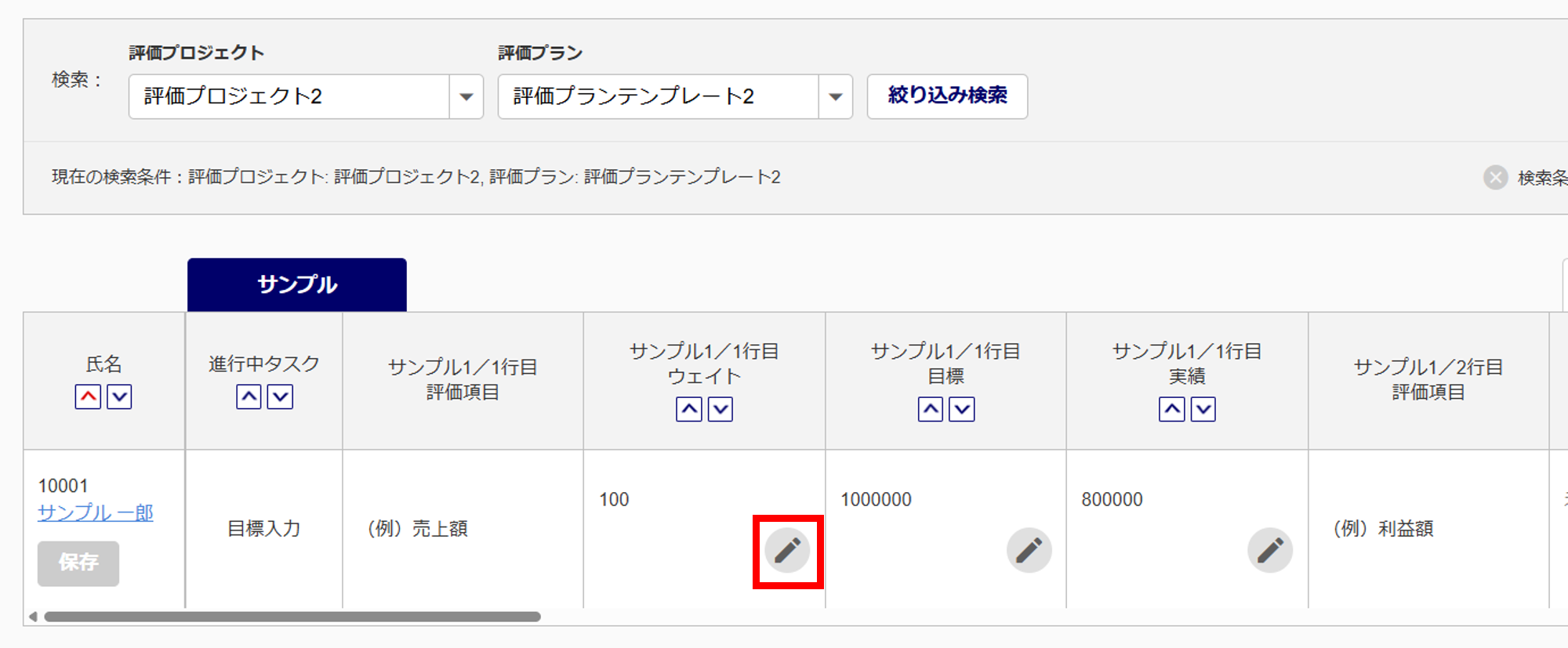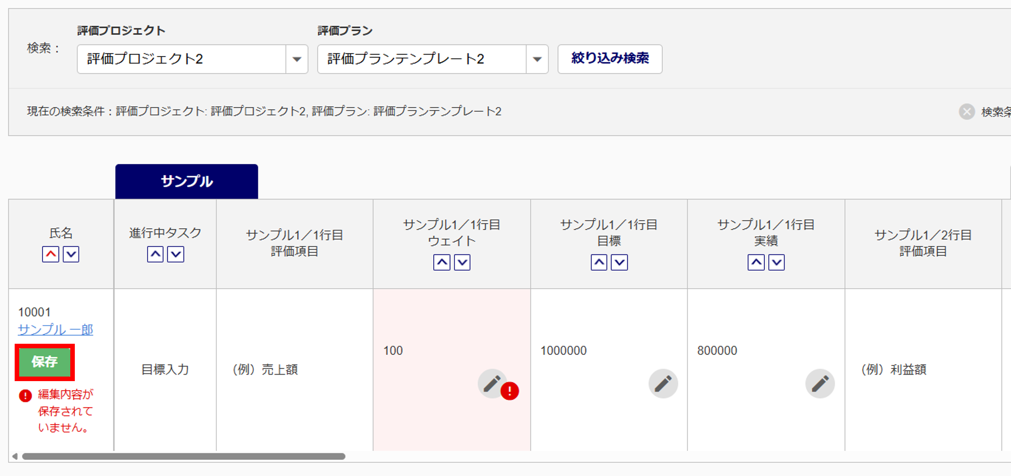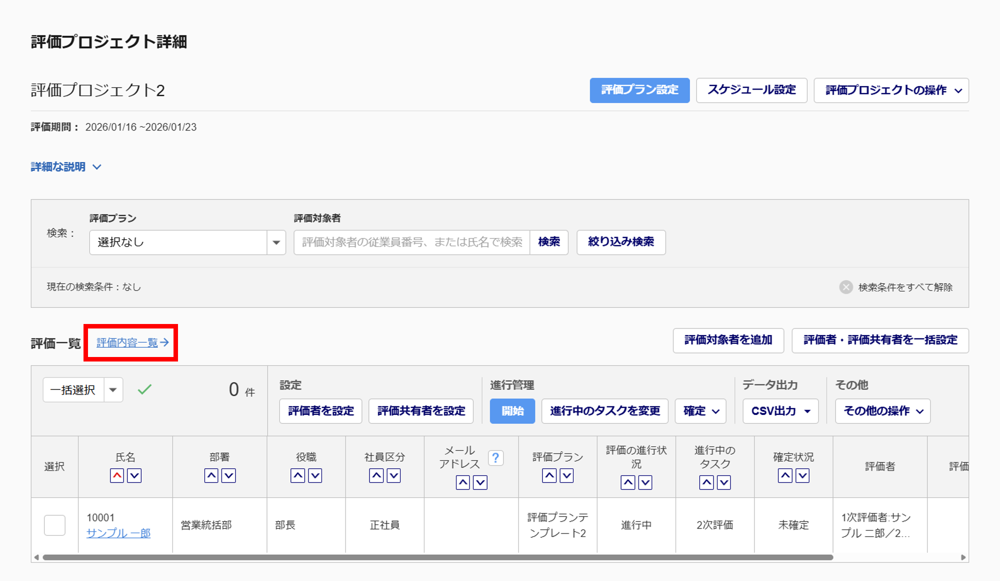 評価プロジェクト「評価内容一覧」画面で、各従業員の評価内容を編集する方法について、ご説明します。