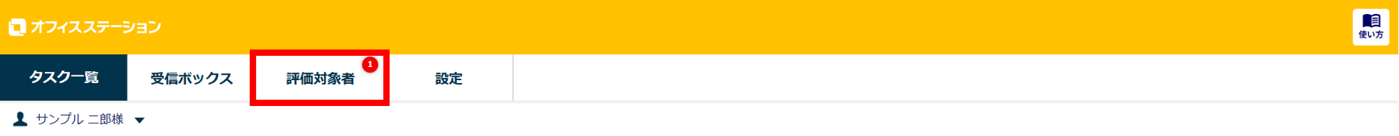 PCから従業員マイページにログインしている場合は、画面上部の[評価対象者]をクリックしてください。