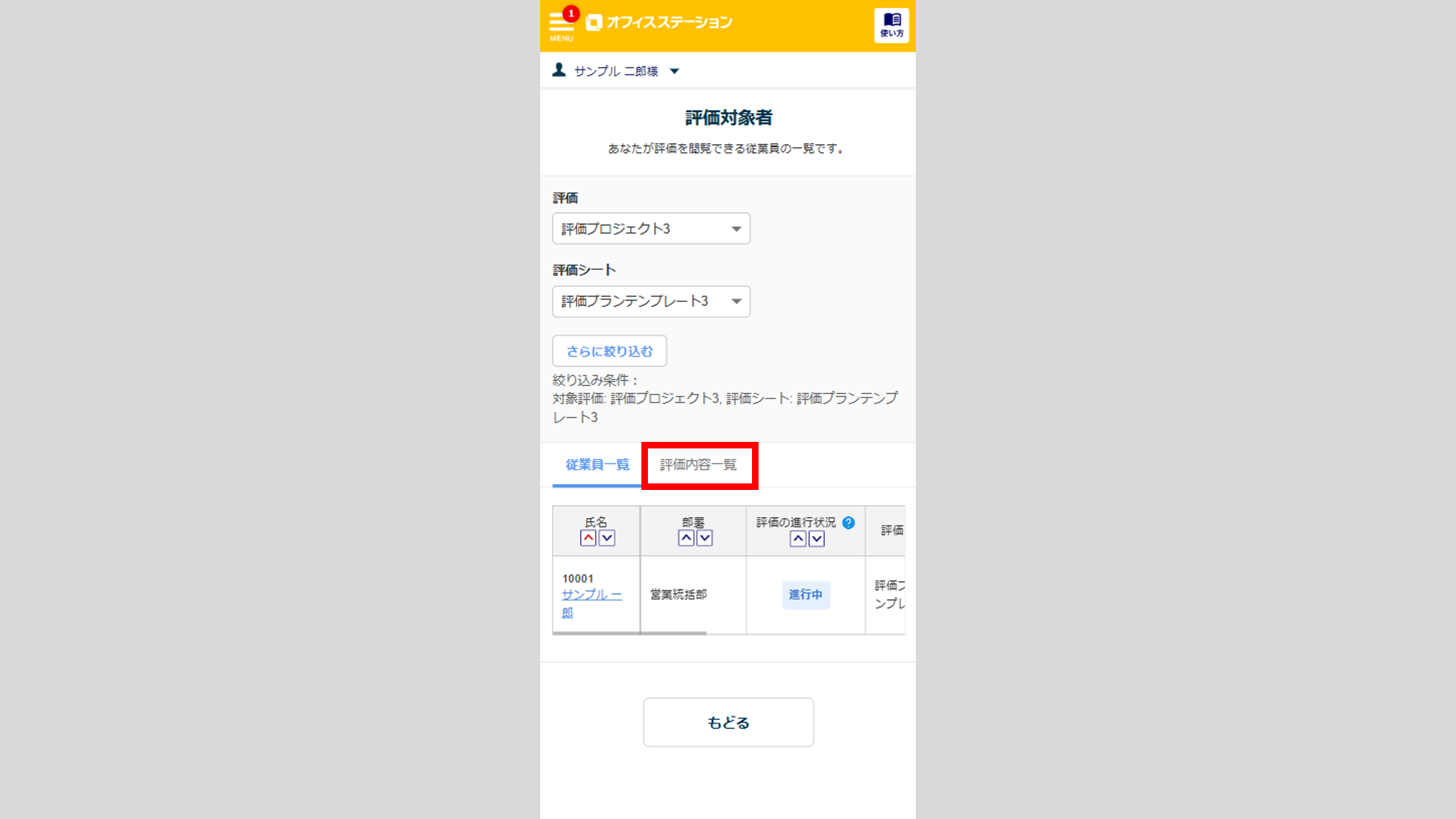 [評価内容一覧]をクリックします。