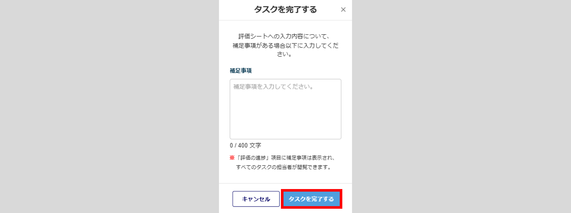 必要に応じて「補足事項」を入力し、[タスクを完了する]をクリックします。