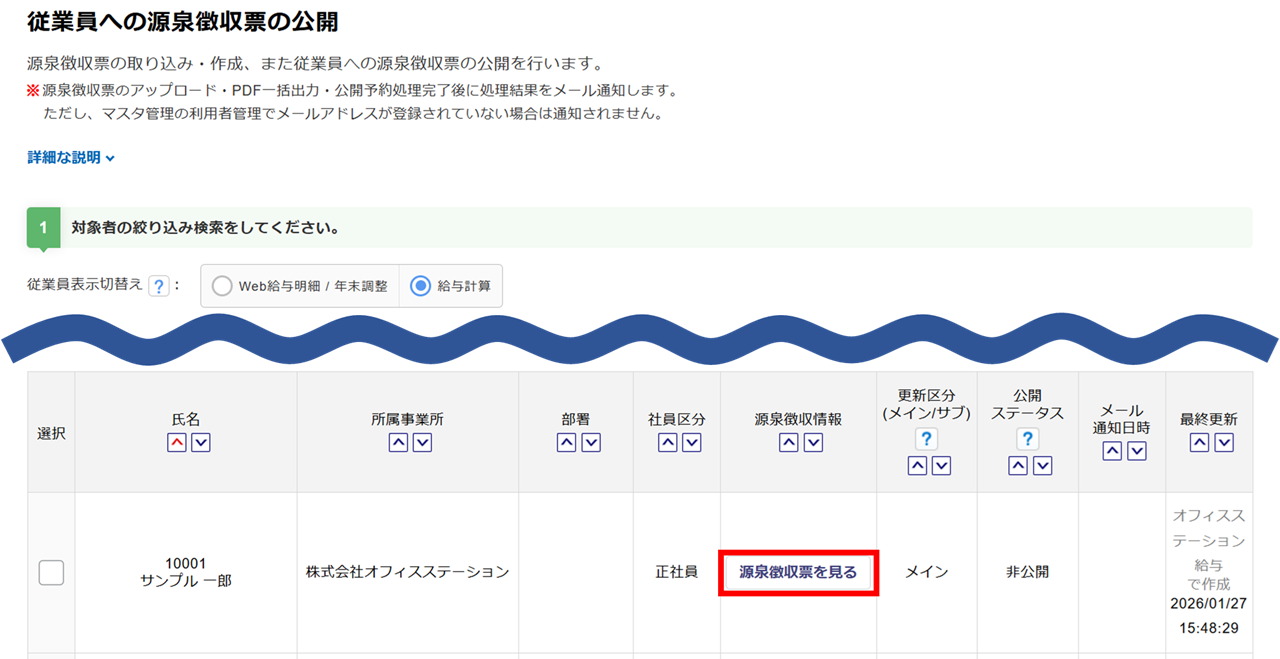 給与計算からデータを取り込んで源泉徴収簿を作成した場合、「役職名」は空欄になります。