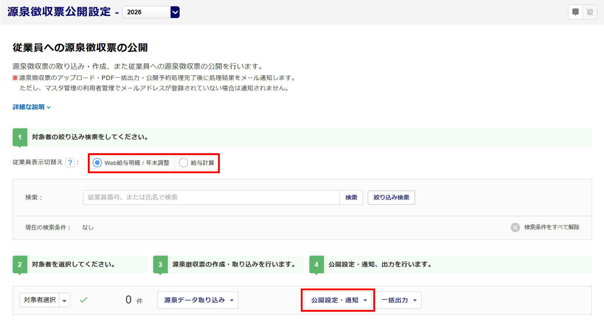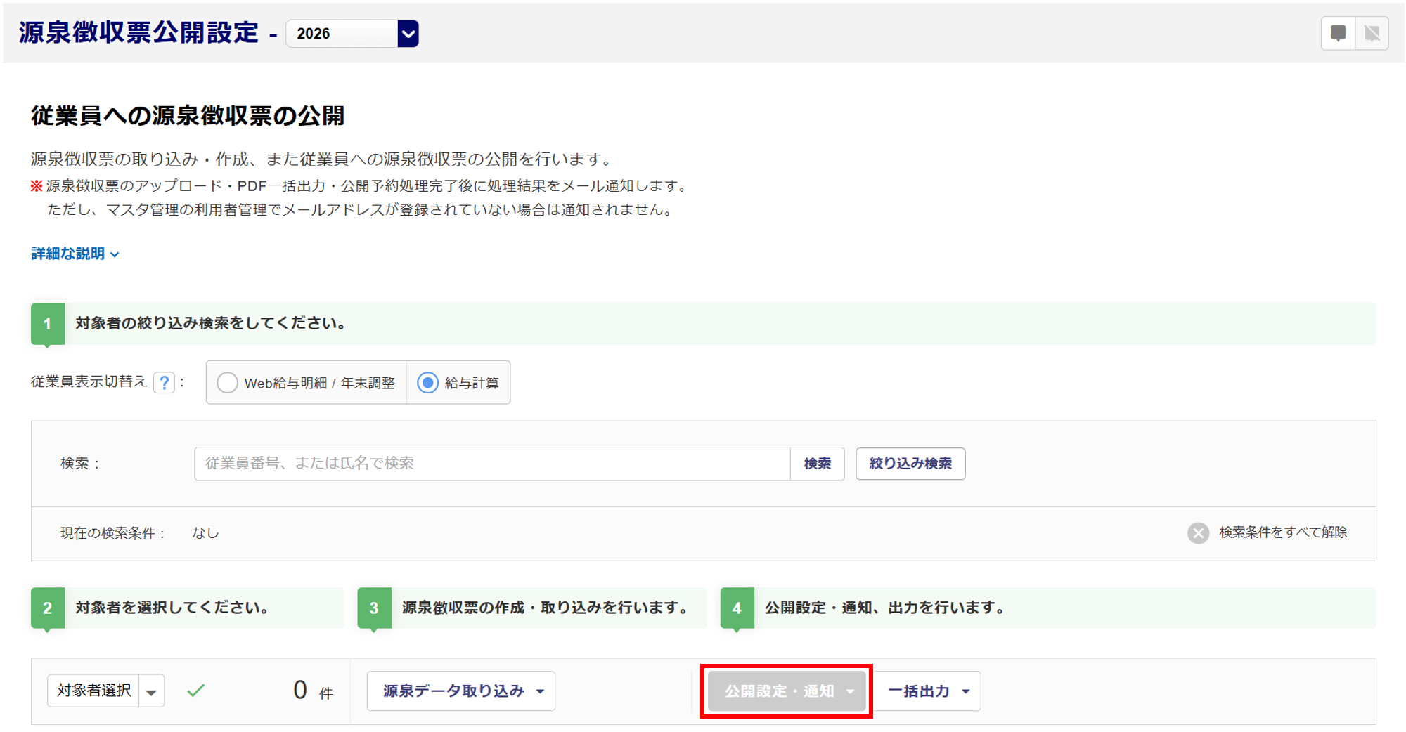 2245|【給与計算】源泉徴収票公開設定[公開設定・通知]ボタンがクリックできない