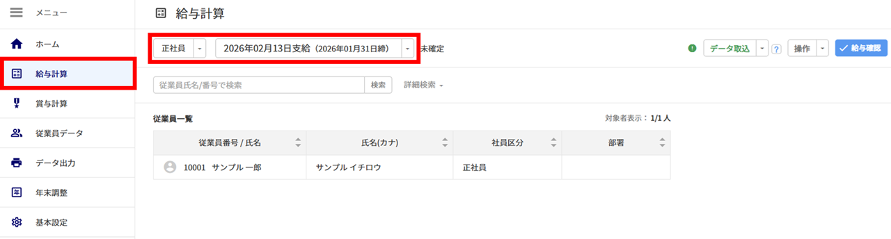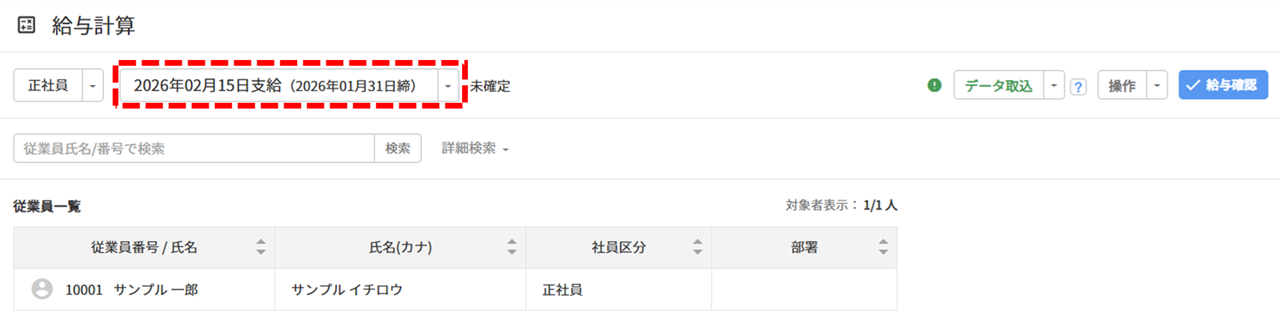 「支給日」が変更されていることを確認し、給与計算をおこなってください。