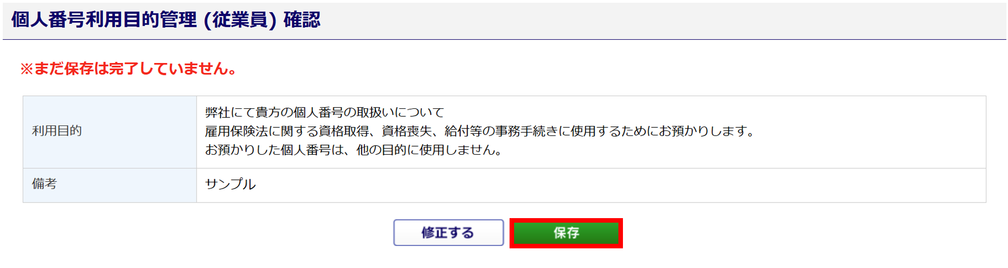 内容を確認し、[保存]をクリックします。