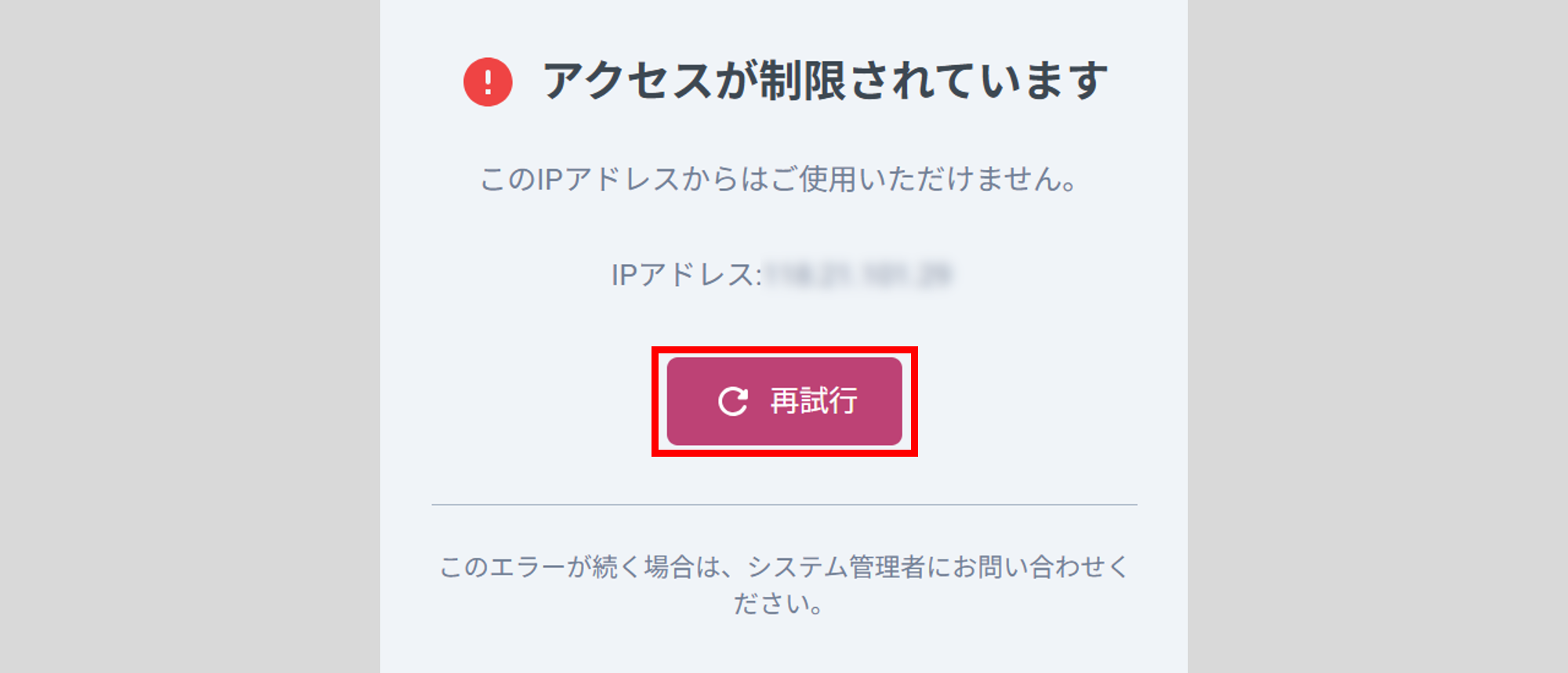 「このIPアドレスからはご使用いただけません。」