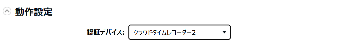 3. 「動作設定」カテゴリ内「認証デバイス」を「クラウドタイムレコーダー2」と選択>[登録]をクリックします。