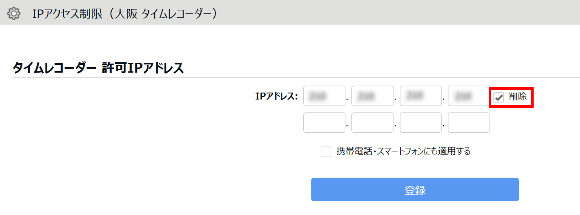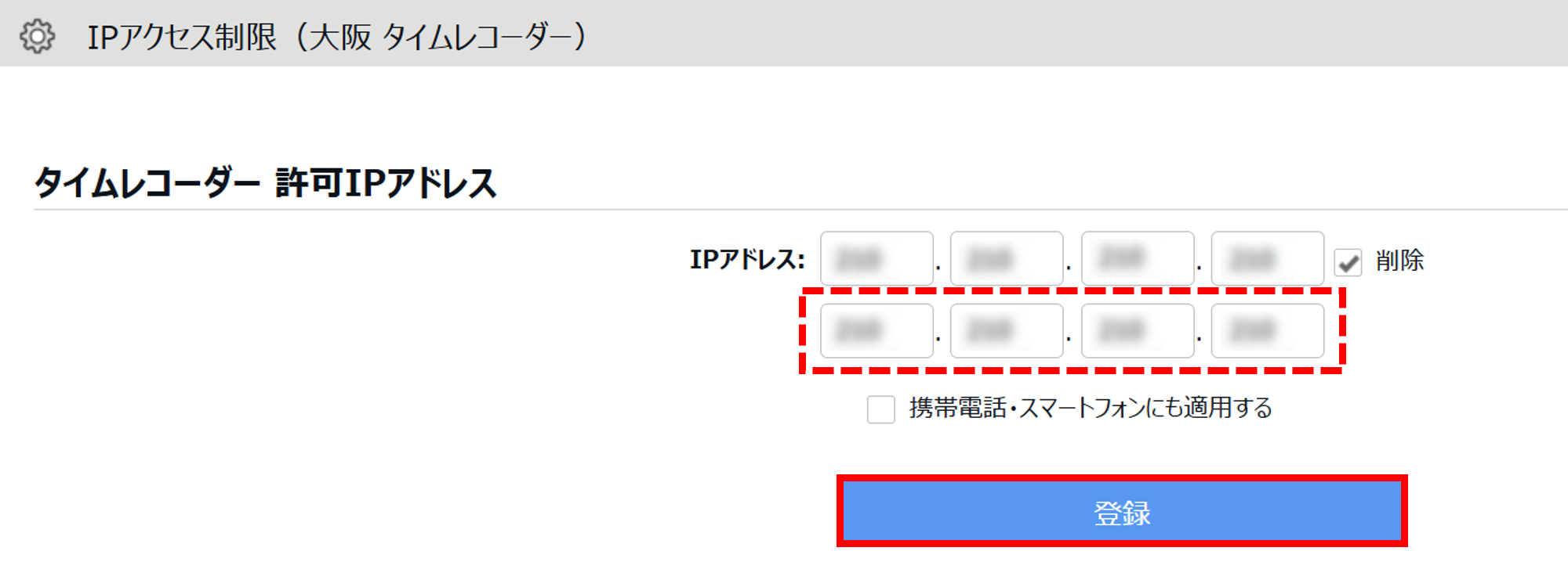 3. 空欄に正しいグローバルIPアドレスを入力して[登録]をクリックします。