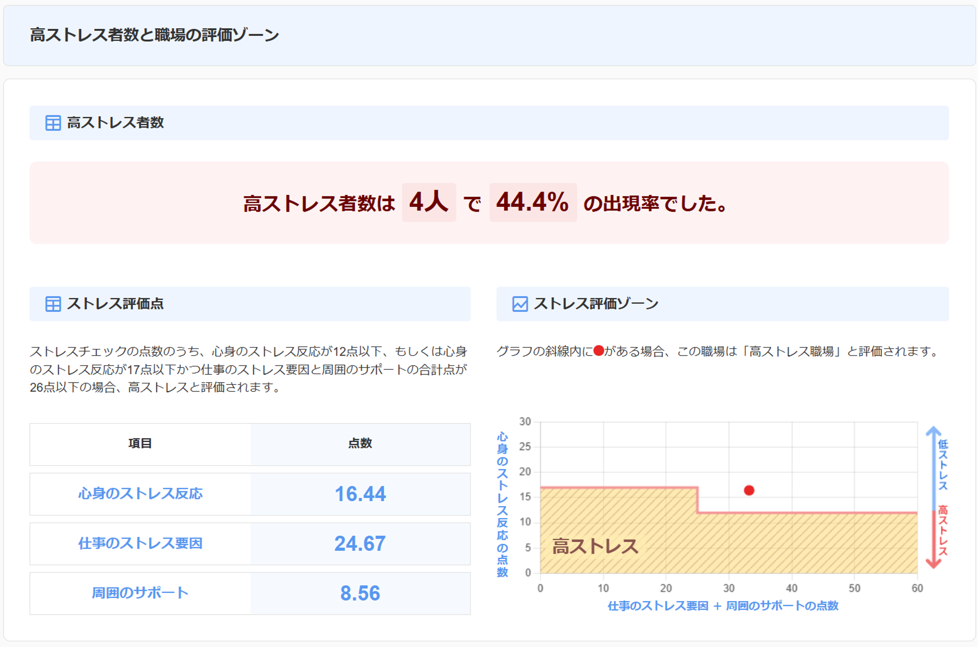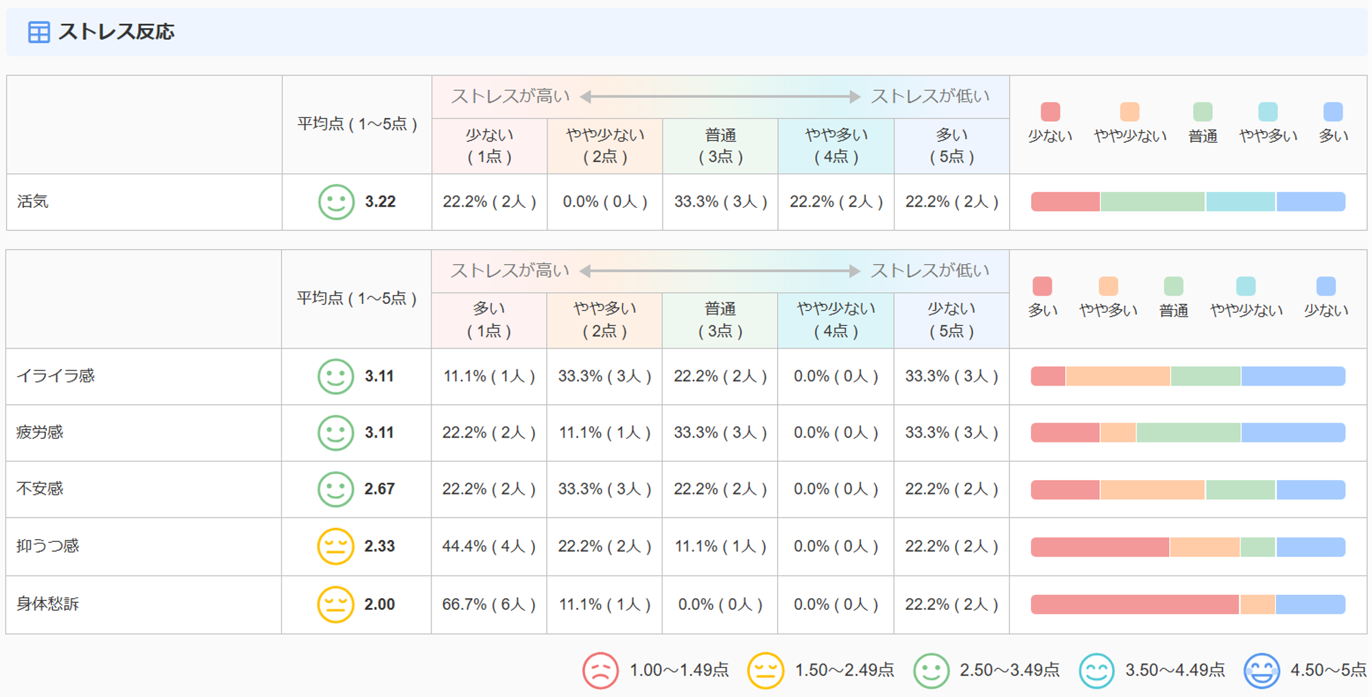 本画面では、従業員からのストレスチェックの回答の集計結果を確認できます。