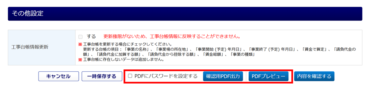 確認用PDF出力/PDFプレビュー