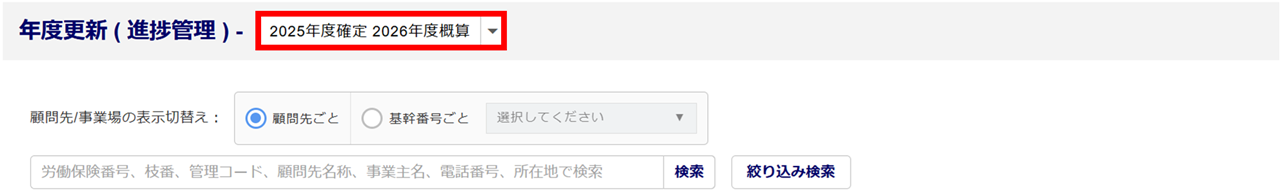 「年度更新 ( 進捗管理 )」画面が表示されます。