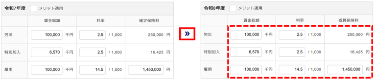 「メリット料率」を入力した場合、事務局にて保険料を確定した際に入力された料率を顧問先管理に反映します。