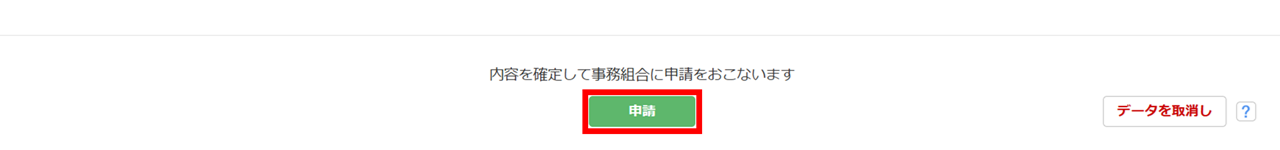 アラート内容が解消された場合、「申請状況」欄に「受付待ち」、「登録を完了し、事務組合に申請しました。」と表示され、保険料の申請は完了です。 - 入力内容の修正が必要ない場合