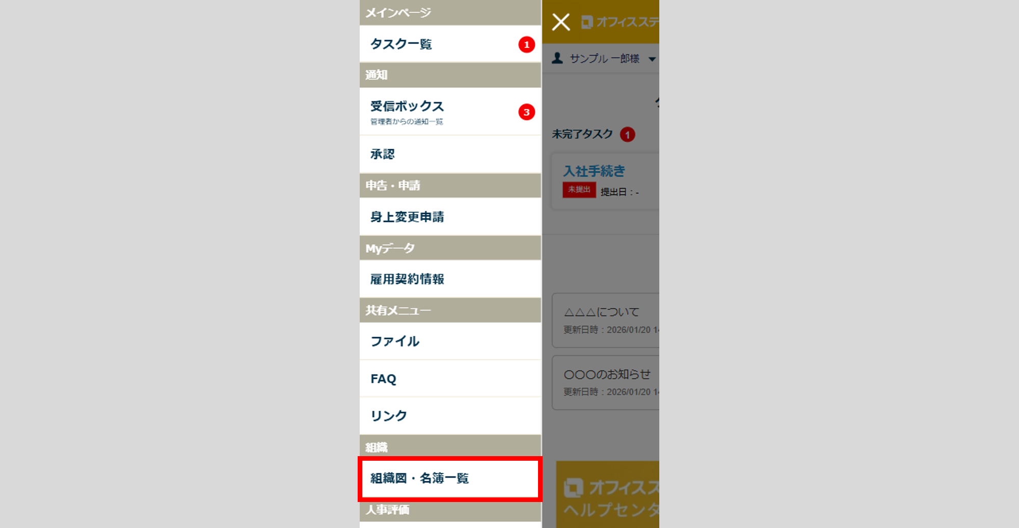 管理者が設定した組織図・名簿を、従業員マイページで確認する方法について、ご説明します。