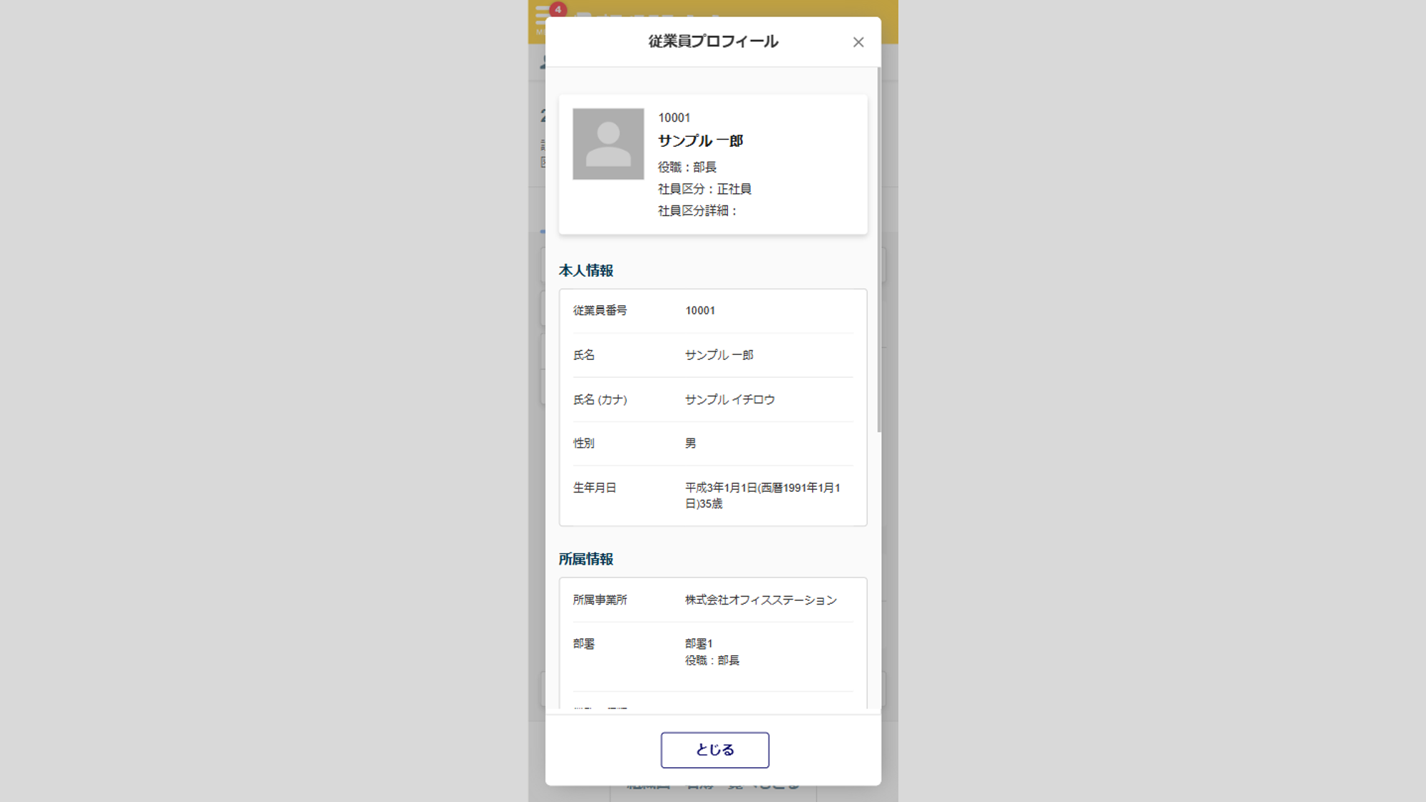表示されている従業員をクリックすると、従業員のプロフィールが表示されます。
