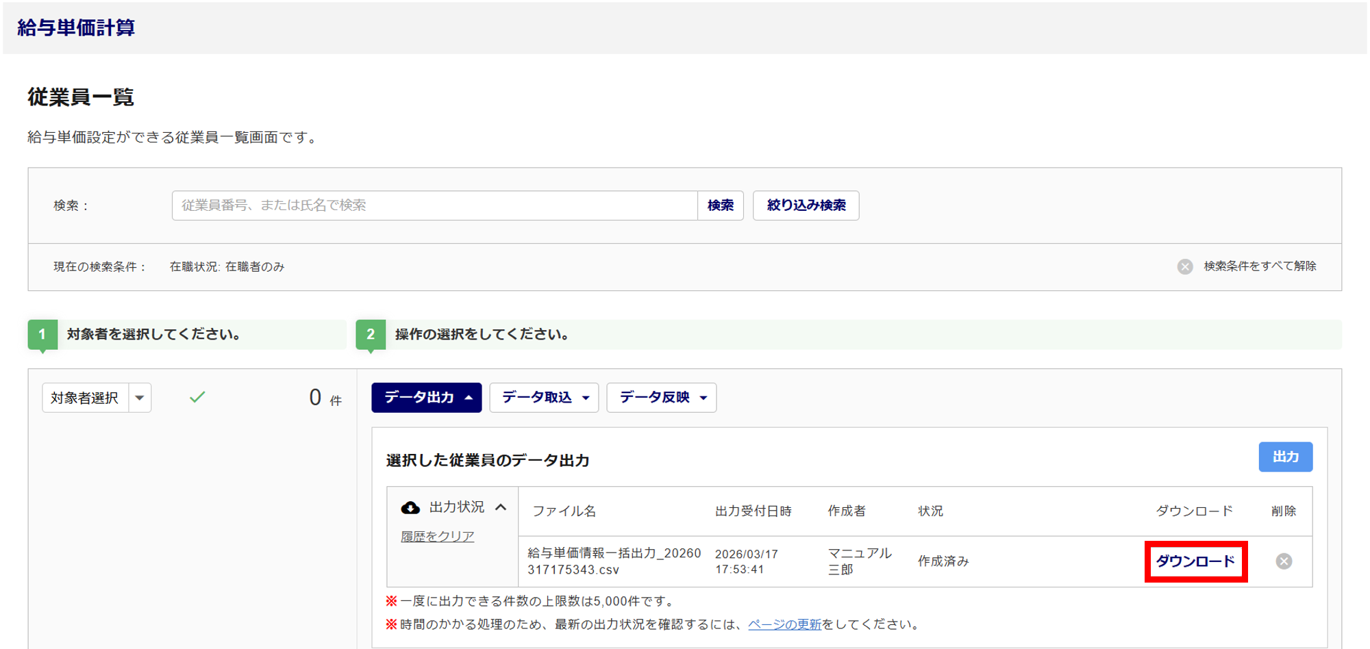 2368|「給与単価計算」従業員一覧の操作方法