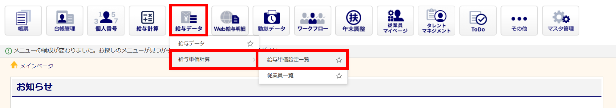 [給与データ]>[給与単価計算]>[給与単価設定一覧]をクリックします。