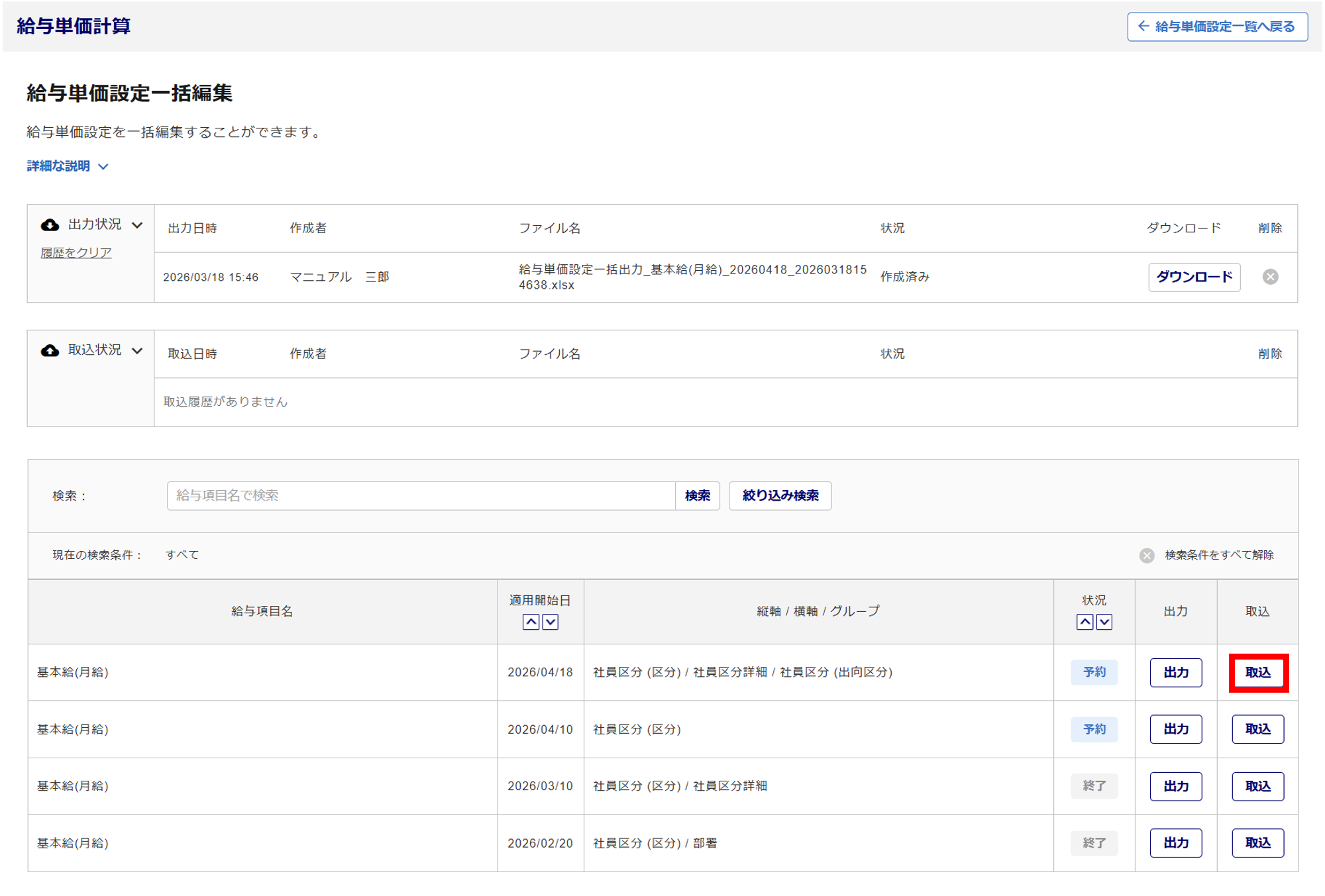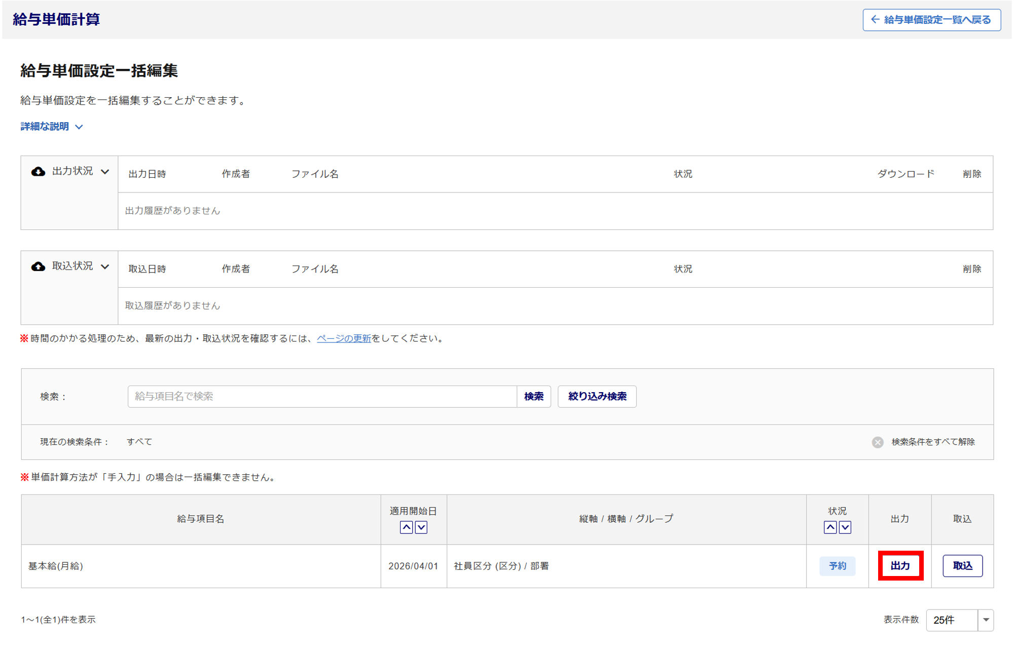 登録済みの「給与単価設定」を一括で編集する方法について、ご説明します。