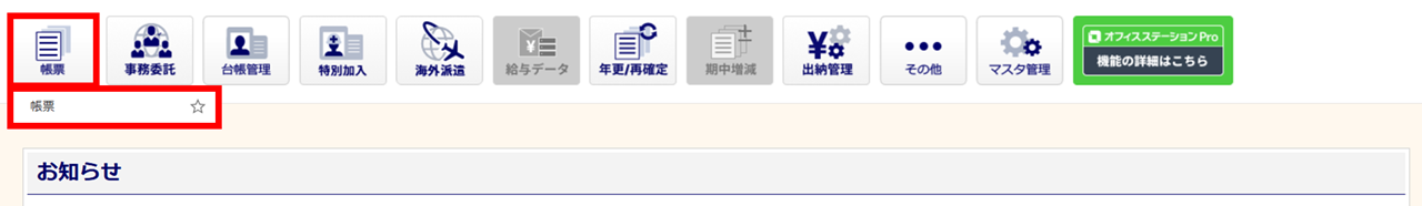 [帳票]をクリックし、表示されるメニュー内の[帳票]をクリックします。