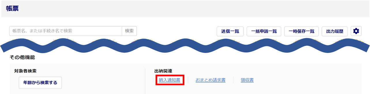 画面下部の「その他機能」内[納入通知書]をクリックします。