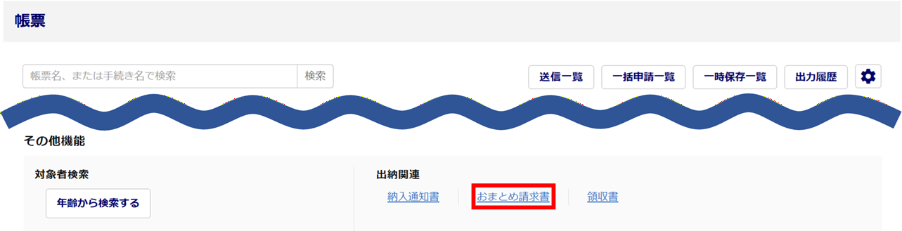 画面下部の「その他機能」内[おまとめ請求書]をクリックします。