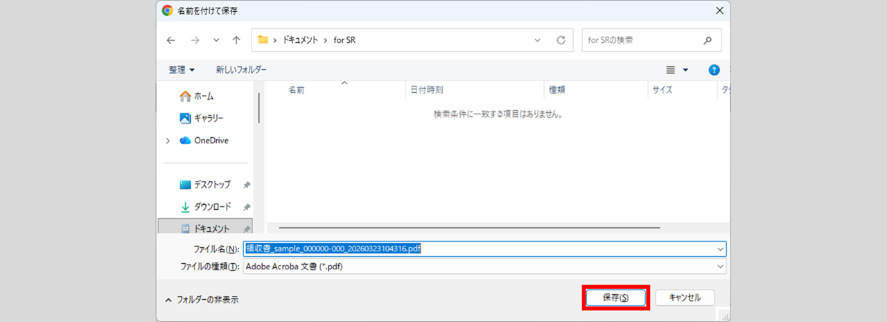 操作しているPCのフォルダ画面が表示されますので、任意のフォルダを指定し、[保存]をクリックします。