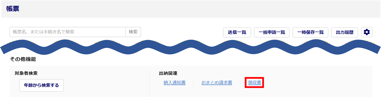 画面下部の「その他機能」内[領収書]をクリックします。