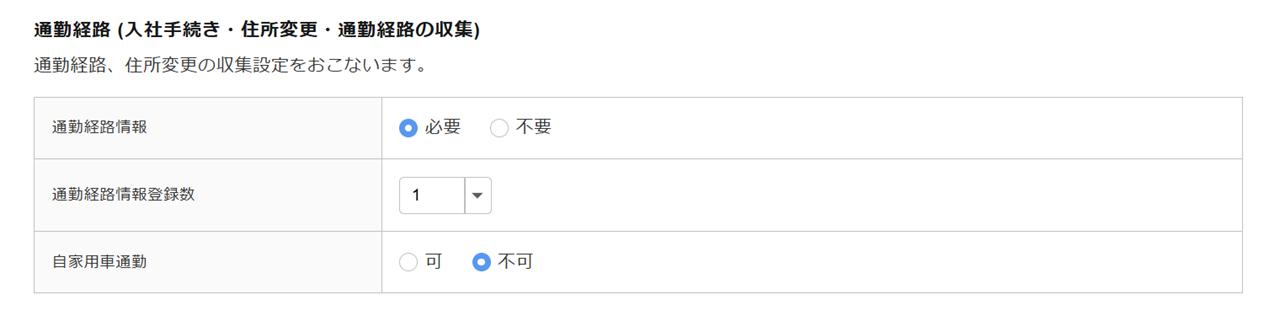 住所変更時の通勤経路情報の収集について設定します。