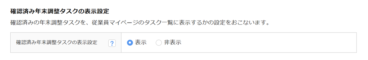 「確認済み年末調整タスクの表示設定」を設定します。
