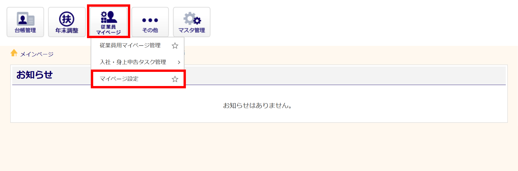 [従業員マイページ]>[マイページ設定]をクリックします。