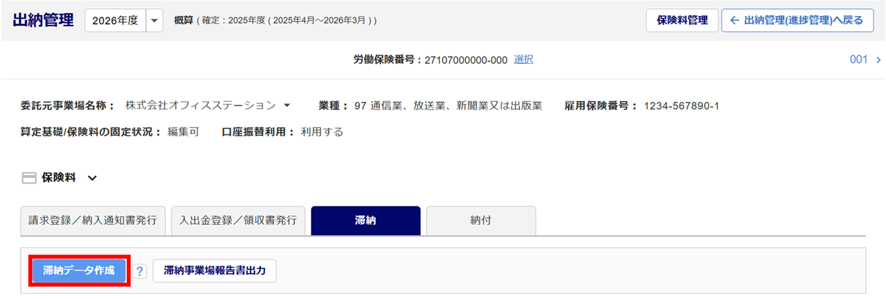 納期限までに保険料・拠出金を徴収できなかった事業場の滞納発生状況を登録し管理します。