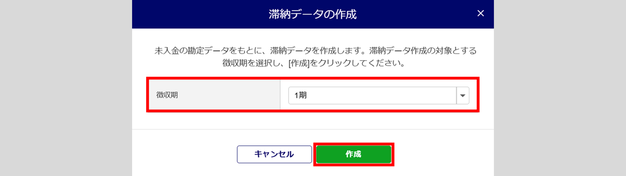「滞納データの作成」画面が表示されます。